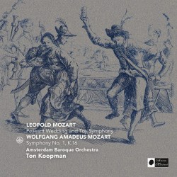 It is surprising that Leopold Mozart, well known slave-driver of his young son, should have indulged in such foolery, but here is the evidence. The Peasant Wedding is full of good tunes, as is the long misattributed Cassation ex G, parts of which were previously known as Haydn's Toy Symphony. There was demand for easy listening even in the 18th century and Leopold was not above using such additional colours as produced by the list of instruments above. Heleen van den Bos notes that, since court music making was not open to the public, there was a demand for compositions suitable for amateurs. Also included on this disc is Wolfgang Mozart's First Symphony, composed at the ripe old age of 9, and a set of variations he composed many years later as a newly-wed. This is based on a still well known French folk tune "Ah, vous dirai-je, maman", and displays how clever the young composer had become in the variation form. It is played on a period fortepiano from 1803, arguably a bit too recent for this 1781/2 work, but it sounds much more of the period than it would on a modern Steinway. A final chip from the workbench is Gallimathias musicum K.32, the manuscript of which was heavily marked by Leopold to correct the weaknesses of his eleven-year old son, who at least had the decency to exclude rattles and cuckoos from his youthful fugue.