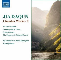 This disc, the second in a series from Naxos devoted to his chamber works, gives us all a chance to hear that work and identify what made such an extraordinary impression on the Chinese government. From the very opening, with the wailing of the violin, the explosive punches from the piano and the energetic knocks and scrapes from the percussion, we are thrust into the world of traditional Sichuan opera (“Bashu” was the name of states from which Sichuan was formed). Clearly this is music which wears its ancestry not just on its sleeve but allows it to permeate every sinew of its body. But vivid Sichuanese effects are not the sole musical feature of this intriguing score. Before we have reached four minutes into the first movement (“High Pitched Tune”), we are firmly in the sound-world of Messiaen, and with the motor rhythms of the piano and the interweaving violins of the second movement (“Veins in Rock”), we are shown a musical language which derives as much from the masters of 20th century European music as it does from the traditions of China. We read that this movement depicts the “strength of the mountains” and the “changes in the mountains’ structure” so much a characteristic of the Sichuan landscape. Visual stimulus was obviously at the forefront of Jia’s mind, but this is music which needs no such picturesque imagery to justify itself on purely musical grounds. Perhaps only the third movement (“Masks”), which “is based on the different types of facial makeup”, seems to need its visual imagery to make sense. It is in the form of a disjointed dialogue between the two violins (Wu Shuling and Tian Junjun) with operatic effects from the three percussionists (Song Yuchen, Zhu Tianyao and Ma Li) and some reflective, Messiaen-like outpourings from the piano (Yu Xiangjun). It is a fascinating work, and one can only admire the dedication the six members of Ensemble Les Amis Shanghai in presenting it in such a powerfully committed performance.