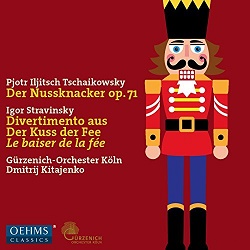 This new set of the complete Nutcracker Ballet from Dmitrij Kitajenko has left me in something of a quandary. In recent years the combination of Kitajenko and the ever-excellent Güzernich-Orchester Köln on Oehms Classics has produced impressive and individual cycles of the Tchaikovsky and Rachmaninov Symphonies. For Capriccio the same performers produced powerful Shostakovich & Prokofiev cycles. In every set Kitajenko produced interpretations of undoubted insight - often overwhelmingly convincing, occasionally perplexing, but never run of the mill. Which is why this Nutcracker - the generous coupling of Stravinsky's Fairy's Kiss is another matter - perplexes me. With occasional passages which rouse themselves from a collective ordinariness this is a strangely underengaging performance, to the point where I really do wonder whether Kitajenko likes the work much. All too often musical choices are generalised or routine. Because the Güzernich-Orchester Köln is a fine orchestra and Oehms Classics an excellent label the general quality of playing and engineering is very good but with too little coming from the podium to lift it out of the routine.