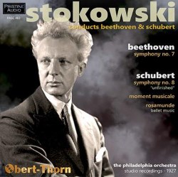 To help me in assessing Stokowski’s performance of Schubert’s Unfinished Symphony, I listened to a 1947 recording with the Philadelphians conducted, this time, by Bruno Walter (as restored in Pristine’s two-disc set ‘Bruno Walter Rarities’ - review). The movements in both performances time to within a few seconds of each other and both readings could be called ‘unexaggeratedly romantic’. Given that many of the musicians must have played in both recordings and that both conductors could be flexible but seldom indulgent in their phrasing, it’s not surprising that the performances are similar. But what is remarkable is the sound quality of Stokowski’s recording. In comparison with Walter’s recording, the orchestra is placed slightly further back (but not too far) and the dynamic range is not as wide. But in almost every other way the engineering for Stokowski is to be preferred to Walter’s engineering of twenty years later. Mark Obert Thorn was Pristine’s producer and restoration engineer for both these releases. His transfer of the 1927 recording brings string tone of remarkable warmth, weight and refinement. The first movement’s opening melody starts with powerful, resonant celli and basses. When the second subject’s famous lyrical theme (first stated by the celli) is taken up by the violins, that choir has impressive weight and sheen. The recording handles the dramatic interruption of the theme by the tutti sforzandi with relatively little diminution in quality.