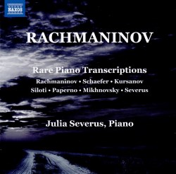 Alongside Severus’ interesting essay, Keith Anderson contributes a valuable note on the various transcribers. Allied to the quality of the recording and the all-round excellence of the music-making on display as well as the generous playing time this makes for a very enjoyable disc indeed. The catalogue contains a disc of song transcriptions made and played by the late great Earl Wild, but that aside this seems to hold a pretty unique place in the Rachmaninov discography. As such, admirers of this composer really need not delay - this is an excellent recital in every respect.