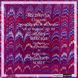 Henry Merckel (1897-1969) fulfilled the dual role of an orchestral concertmaster and a soloist. For three decades he lead several French orchestras. He represented the Franco-Belgian School of violin playing, with its emphasis on tonal beauty, refinement and good taste. Yet he lacked the individuality of Jacques Thibaud and Zino Francescatti, two of his French contemporaries, and his profile has fallen somewhat below the radar. As for the conductor Maurice Soret, I was unable to gain any biographical information other than that he had associations with this orchestra around the 1950s.