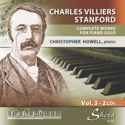 My first experience of Stanford’s piano music came in the form of his two sets of twenty four preludes expertly played by Peter Jacobs, one on Priory (PRCD 449) and one on the much lamented Olympia label (OCD 638). Whilst I have often played these two discs and enjoyed them immensely, I have never got around to enlarging my catalogue of his piano music until now. I am glad I now have the chance to do just that, and indeed listen to his complete piano music, something I thought unlikely in the 1990s when Jacobs made his recordings. For this we must be eternally grateful to Christopher Howell, not just for performing the music, many receiving their premiere recordings, but also for collating, editing, researching and composing the detailed copious notes; obviously a real labour of love