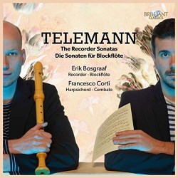 I already indicated that the music on this disc is available in other recordings. I would like to mention here a set of six discs on the Swedish label BIS which includes Telemann's complete output for recorder. However, this disc is a real winner and deserves to be part of the collection of every recorder or Telemann aficionado. Erik Bosgraaf is one of the world's most gifted recorder players, a real virtuoso but also someone with a good sense of style. Sometimes - in live concerts - he can go a little overboard once in a while, for instance with exaggerated ornamentation or breakneck speeds. There is nothing of that sort here. Some movements are taken at high speed but never at the cost of a clear articulation. In a few movements he includes a very high note which is probably not really needed, but all in all there is hardly anything to complain about. This is a fine demonstration of the art of the recorder and of Telemann's almost limitless creativity. And I should not forget to mention the outstanding support by Francesco Corti at the harpsichord, who is in every way Bosgraaf's congenial partner.