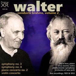 In the first few weeks of 1951 Bruno Walter conducted the Philharmonic-Symphony Orchestra of New York (PSONY) in a Brahms cycle that has become the stuff of legend. Here Pristine offers the bulk of those performances – I believe Volume 3 will include the German Requiem and, presumably, the D minor Piano Concerto. Andrew Rose has remastered the recordings using his XR process. It will be noted that one or two performances are not from the 1951 cycle. That’s because a few of the 1951 originals, including a performance of the Violin Concerto with Zino Francescatti, appear to have been lost. In the case of missing items a live recording from as near as possible to 1951 has been used instead. I’m not sure how many of these performances have been released before on other labels. I do know of one Tahra release, which I have not heard, which included the same performances of the Second Symphony, the B flat Piano Concerto and the Violin Concerto. That release was the subject of an earlier review by Jonathan Woolf.