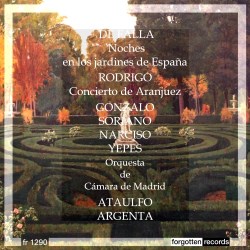 Narcisco Yepes made five studio recordings of Rodrigo’s Concierto de Aranjuez and Forgotten Records has handily released the late mono and early stereo traversals of 1954 and 1957 respectively. To confuse the issue for contemporary record buyers the conductor was the same, Ataulfo Argenta, but the orchestra changed from the Madrid Chamber Orchestra in 1954 to the later Spanish National Orchestra.