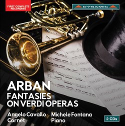 For this (what appears to be) first recording of the complete set of Verdi opera Fantasies, Angelo Cavallo produces a suitably mellow tone from his cornet à piston and handles all the technical challenges with ease, adding a pleasing military crispness to the jaunty rhythms such as that which concludes I Lombardi. A very restrained vibrato, a somewhat limited dynamic range and a general absence of dramatic gesture does nothing to dispel the overriding feeling that this is music more intended for private technical work-out rather than public consumption. When familiar themes pop up – the Rigoletto fantasie is particularly full of them – they seem grey and uneventful, and the principal interests Cavallo seems to find in the music are the very predictable alternating fast and slow variations, as well as the obligatory sets of running triplets. Michele Fontana is a suitably supportive pianist who sets the scene in his introductions, touches base with some firmly planted rhythmic support, and only occasionally seems inclined to add his own touch of drama - there are spectacular if short-lived bursts of virtuosic personality in I vespri siciliani. The recording sets it all in a slightly hazy environment, which is probably only to the benefit of music which, with the best will in the world, is of rather more interest to those performing it than it is to those listening to it.