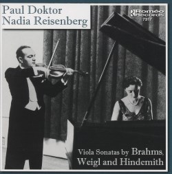 Doktor's deliberate and husky-grained viola serves as his signature. It's far from pasty-faced and matches well the warm and flowing readings accorded to the two Brahms works. The gracious playing of Doktor and Reisenberg radiates outwards in the first of the two sonatas. The Andante of No. 1 has a Bach-like serenity. The Second Sonata adopts a vulnerable Kreislerian smile but here Reisenberg finds the sort of craggy drama encountered in the First Piano Concerto. Doktor assumes a winning lilt for the Allegro appassionato.