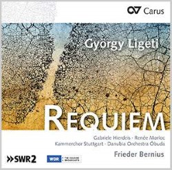I compared this account of the Requiem by Frieder Bernius with those by the London Voices and Berlin Philharmonic under Jonathan Nott, from Teldec’s “Ligeti Project,” and a more recent one by Peter Eötvös with Köln and Stuttgart forces on BMC. All three are very accomplished and should satisfy anyone seeking a recording of the Requiem. They are all live recordings, as far as I can tell. The microphones seem to be placed closer to the musicians for Bernius here. This enhances the clarity of the score, as to vocal diction and the orchestral parts. It also has the widest dynamic range. The vocal soloists, too, are well matched and excel in their demanding roles. The single drawback with such a close recording of a live performance is that extraneous noises, whether emanating from the stage or elsewhere, occasionally intrude on the listener—especially when listening on headphones. This is my only cavil. Overall, this is as fine an account as is currently available. If you already possess the indispensable Ligeti Project, you will want this account of the Requiem primarily as a supplement to the one there.