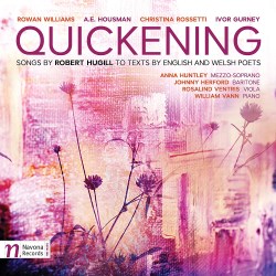 Two CDs of Hugill's music have been reviewed here: The Testament of Dr Cranmer and Passion. While those two discs were occupied by his choral works the present one continues with eighteen of his solo voice songs. These are grouped in single-poet cycles or sets with one isolated song by A E Housman. All are for voice and piano with the viola added in the case of the Rossetti set. The four cycles or sets are variously to words by Rowan Williams (Archbishop of Canterbury (2002-12)), Housman, Christina Rossetti and Ivor Gurney.