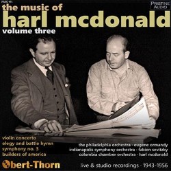 Pristine Records continues its series of the archive recordings of Harl McDonald, once a prominent composer of the American scene and a power in the Philadelphia music world in mid-century. For earlier discs in the series: Vol. 1: review; Vol. 2: review ~ review. Especially notable is the live version of McDonald’s Symphony No.3, surely the most important work in the entire series.