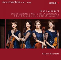 The Klenke Quartet from Germany have made relatively few recordings since they formed in 1991 but those discs, especially of the mature Mozart quartets, have won high praise. They offer here a programme of early and late Schubert, and demonstrate again their high skill in the Viennese classics of the quartet genre. They get off to an impressive start with the sublime Quartettsatz (“quartet movement”) in C minor, keeping the tempo flowing, with none of the unmarked slowing down for the great dolce subject one sometimes hears. When that fine tune is repeated at once the cello counterpoint to it is ideally balanced, and so such refined playing is heard throughout the movement. Their feeling for rhythm and subtle rubato is admirable, key factors in good Schubert quartet playing (as in performing much else of course!). This movement is much recorded by many a famous ensemble, but I do not know of any recent performance I have found more satisfying than this one.