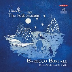 These elements add a great deal of interest in a performance that also reaches deep into string technique to bring out the maximum variety when it comes to winter chill and summer mosquitoes, but rest assured that this is not a “folk-influenced crossover.” Aside from a few slightly extended intros to some movements Vivaldi’s Four Seasons is kept intact in all its glory, but we get for instance a very wittily drunken violinist in the first movement of Autumn, the central movement of which is beautifully slow and atmospheric. The teeth really chatter in Winter, and the “War of the Winds” is underpinned for one last time by that snarling regal. Soloist Kreeta-Maria Kentala’s involvement in a wide variety of period and folk performing makes her performance a joy from beginning to end, and if you’re not fearful of having a bit of fun and exploring the ‘literal’ heart of this masterpiece then this is very much a Four Seasons that can enhance even a collection which already has a number of versions.