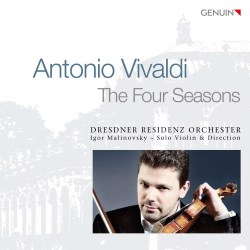 Given that there are so many recordings of The Four Seasons, you look for something distinctive, which is sometimes the other concertos on a CD. Not this one, which stingily has no coupling, but is distinctive in a way you don’t realize from any advertising until you look at the personnel in the CD booklet and discover that for this recording the Dresdner Residenz Orchester – hereafter the DRO - numbers just eight players including the soloist/director. I know of only one other recording like this on modern instruments, that made in 2004 by Janine Jansen and friends (Decca 4756293) which I shall use for comparison. This isn’t a reduced orchestral version. Vivaldi straightforwardly scores the concertos for soloist, first violin, second violin, viola and basso continuo: the number of accompanying instruments used is up to the performers. The interpretation of basso continuo varies. On this Malinovsky CD it’s two cellos, double bass and harpsichord. On Jansen’s CD, also with eight players, it’s cello, double bass, theorbo, chamber organ or harpsichord.