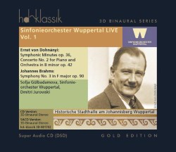 I remember the ‘soundfield’ recordings made for Unicorn Kanchana and Nimbus that ran through Ambisonic UHJ encoding. These were never entirely uncontroversial – atmospheric certainly, though at times missing out on dynamic presence. The artificial head technique can be startlingly lifelike with voices and smaller ensembles, and there are some great results from the Dohnányi pieces, but I feel the darker sonic picture from Brahms suffers a little in this case – possibly due to the acoustic of the venue, which I don’t know from personal experience but looks rather cavernous in photos. The timpani roar away in the opening moments of the symphony, and the strings struggle a little to equal the winds and brass. Pizzicato from the double bass section can also be a bit indistinct. You can close your eyes and feel you are at the concert, but for a recording it would seem that the chance to tweak things just a little, perhaps with a couple of discrete microphones above the orchestra, might have given the flexibility to reach closer to the ideal. Again, this is something different to what we’re used to, and the natural quality of the sound is something you can easily grow to appreciate. I find this recording works pretty well through speakers as well as via headphones. The quality of the orchestra itself is beyond reproach, and this was certainly an exceptionally good concert. The flow and pace of the less densely orchestrated Andante from the Brahms Third Symphony is a movement that oozes affection and brings out the better qualities in the recording. There is indeed much to love here, and I very much look forward to hearing what further titles from this label bring.