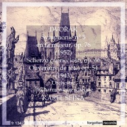 Karel Šejna’s January 1952 recording of Dvořák’s Fifth Symphony is something of a long-term favourite for many. If you’ve omitted to add Supraphon’s transfer, which is on SU 1917-2 001, coupled with the Slavonic Rhapsody, Op.45, Forgotten Records has disinterred it too, transferred from Supraphon LP but their coupling is intriguingly different.