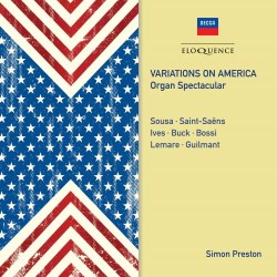 This ‘spectacular’ recital first appeared in the original set of releases in Decca’s 1990 relaunch of its Argo imprint. The re-emergence of this legendary name came with a bold mission statement included in each booklet: “Argo seeks to explore music in four specific areas- choral, organ, British and American.” At a stroke the present disc fulfilled three quarters of that remit. Its reappearance now on Australian Eloquence addresses in part another aim – to restore to currency all of the organ recordings made by Simon Preston for Argo between 1963 and 1990. In fact ‘Variations on America’ is unique among these reissues as it’s the only real example from Preston of a ‘Showpiece’ recital, that is a concert of virtuosic and entertaining organ works designed to show off a particular instrument, in this case the amazing organ of the Methuen Memorial Concert Hall in Boston. So the repertoire here inevitably veers away from the more ‘serious’ fare Preston recorded in the 1960s and 1970s. if one’s sensibilities can withstand some of the rather ‘schmaltzy’ items here, the hour spent with this disc is well spent.