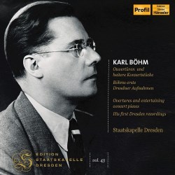 For the past seven seasons in Dresden, I have attended concerts and operas performed by Staatskapelle Dresden. Like any other admirers of this orchestra, I relish this ongoing Edition Staatskapelle Dresden series, such a fertile source of recordings containing that recognisable Dresden sound. Not just appealing to the specialist collector, this collection of remarkably well performed popular light classics on Profil provides an absorbing insight into the recording development of the world-class orchestra, Staatskapelle Dresden under Karl Böhm. Michael Cookson List of works