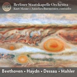 The rest of the disc is more common repertoire. The Mahler Lieder eines fahrenden Gesellen are beautifully sung by Annelies Burmeister, who, incidentally, worked with Dessau on one of his operas. Personally I prefer a male voice for this unique cycle, after all Mahler specified a low voice and the poems were written by him for his then love Joanna Richter. The man is addressing the woman throughout. Hearing them with a female voice is fine musically but the words make a lot less sense. That apart, the performance is lovely and enhanced by the fact that Ms Burmeister does not have her own microphone and is thus balanced within the orchestra and not on her own in front. Masur encourages an exciting orchestral frenzy during the third song. The quiet end of the cycle, to the words Love and grief, my world, my dreams! is very moving. The Beethoven is rather grander than one might expect in these historically informed days, whilst the Haydn, a very slow largo apart, is delightfully characterful with particularly fine wind playing. Haydn's Symphony No.88 is always a pleasure.
