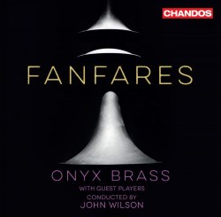 The Onyx brass quintet are joined by friends and colleagues to facilitate the performance of a remarkable range of works. Within the seemingly limited description of ‘fanfare’ this ranges from Bliss’s High Sheriff’s Fanfare for just a pair of trumpets up to Arnold’s powerful Festival Fanfare for five horns, six trumpets, five trombones, tuba, cymbals and timpani.