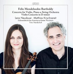 The Double Concerto, as it is also known, shares with the string symphonies an affinity with CPE Bach rather than the early romantics and is therefore more classical in nature than what was to follow shortly. It has the standard three movement structure of fast-slow-fast, with a lengthy orchestral introduction before a solo instrument, the piano, appears, although the violin soloist does begin as part of the orchestra. As a concerto the work is not as profound as his later, more mature works, but it is important in that it maps out Mendelssohn’s development as a composer. For me it is the slow movement that displays the finest music, it sounds at times more like a sonata with string accompaniment than a concerto movement. Here Lena Neudauer and Matthias Kirschnereit have a beautiful sense of togetherness, producing a more pleasant tone than their more illustrious competitors, their performance shows a touch which is a little lighter that Kremer and Argerich and therefore more in keeping with the classical nature of the work.