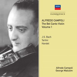 The first dilemma arises in the first volume. The first disc contains his 1948 78rpm set of Bach’s Partita in D minor, the one ending in the Chaconne. It adds two sonatas by Tartini – the Devil’s Trill, inevitably, and ‘Didone abbandonata’. The second disc is devoted to the set of Handel sonatas he recorded with George Malcolm – a set that has been issued by Testament (SBT 1358) which included the Chaconne (only) from the Partita as a kind of bonne bouche. Those who snapped up the Testament, as I did, may well furrow a brow at this point. The Bach, which also appeared incongruously coupled to Bruch’s G minor on LP in 1951, is played in quite a ripe fashion, and the over-vibration vests the Chaconne in particular with a somewhat less than buoyant sense of direction. It’s good to encounter George Malcolm’s pianism in the Tartini sonatas – strong, songful, vibrant-toned examples of Campoli’s art. The Handel Sonatas, with Malcolm now playing the harpsichord, glow with vivid commitment to the cause of Romanticism in Baroque string music. Campoli’s finger position changes and expressive Italianate playing is fully burnished. The tension never sags in the opening of the F major (Op.1 No.12) as it often can. With rich cantilena and buoyant fast movements, clear articulation and artful singing tone, this is a splendid, very individual set of the sonatas.