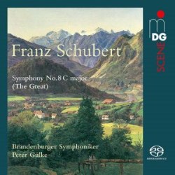 Frequently recorded works such as this are bound to have competition, and I have had another two SACD versions knocking around my collection for a while. Jonathan Nott with the Bamberger Symphoniker on the Tudor label (review, single disc and review, box set) is very well played and recorded and highly recommendable, though ultimately I found the distinctive character and more opulent sound of the Berliner Philharmoniker on their own label conducted by Nikolaus Harnoncourt marginally preferable (review). The BIS label has the Swedish Chamber Orchestra conducted by Thomas Dausgaard, which is a bit of an outlier but manages to have both grandeur and chamber-music intimacy. All of these have better clarity of sound than this MDG release, and the Harnoncourt in particular has much more inner life. Peter Gülke’s Schubert has much that can be admired, but for me is alas not memorable enough to go very high on the big wobbly heap of choices.