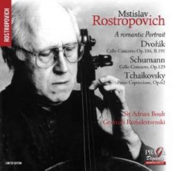 The Pezzo capriccioso, recorded in performance in Moscow, is solid middle-tier Tchaikovsky: lyrical passages cast in almost manipulatively rich harmonies alternate with scurrying figurations for the cello. Rostropovich attacks the opening gestures dramatically, with hearty accents; scales down tactfully for the broad cantabiles; and impresses in the rapid passages, here and there threatening to pull ahead of Rozhdestvensky's orchestra.