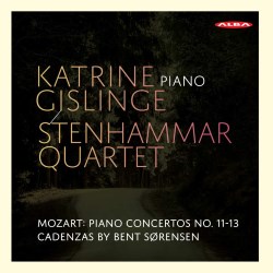 Danish pianist, Katrine Gislinge, was joined by her countrymen from the Stenhammar Quartet for this recording of Mozart’s Piano Concertos No. 11-13. Mozart started to write these works in the autumn of 1782 shortly after his arrival in Vienna, and he specified that they could by accompanied either by full orchestra or by string quartet. These are all relatively intimate works and work well as piano quintets.