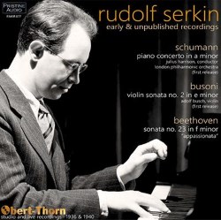 Rudolf Serkin’s first solo disc recording was made in November 1936 in Abbey Road, London. This is the Appassionata sonata, all first takes, and completed in a single session. It was never transferred onto LP because by then Serkin had re-recorded it. In fact, his performance of it is best-known by the later versions, one for US Columbia in 1947 – variously reissued on CD by Sony, Andante and Music & Arts – and even more so by the 1962 LP, which Sony has reissued many times.