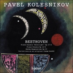 The thought of another 'Moonlight' Sonata filled me with dread. I needn't have worried. With Kolesnikov playing it, that proves to be a fresh element. It's certainly the finest performance of it I've ever heard. The exquisite legato and dynamic sensitivity of the first movement held me spellbound. The finale is dispatched with consummate ease and scintillating brilliance. Op. 14 No. 2 is most welcome, as it doesn't get the exposure it deserves. The opening movement is suffused with the joys of spring, followed by a theme and variations. The Scherzo finale is witty and capricious.