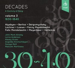 Decades is a projected series of discs, each one of which will include a selection of art songs composed during a ten-year span. The project, curated by Malcolm Martineau, will cover the century from 1810 to 1910. I’ve already enjoyed Volume 1, which spanned 1810-1820 (review) and Volume 2 which covered the period 1820-1830 (review).