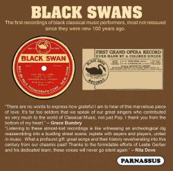 Black Swan was one of the labels that recorded black classical artists in the period covered in this exploratory disc – the period being 1918 to 1922. Paramount did too, though there are none here, but boutique labels such as Broome Special were active, thankfully, and some artists, prominently Roland Hayes, paid Columbia to have personal records pressed. All these avenues are present in Parnassus’ CD which allows the listener an opportunity to listen to artists – predominantly vocal artists – prominent at the time, at least in the black community, given that major record companies routinely rejected classical black artists, such as Hayes, for having no sales potential.