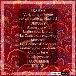 The focus of these three releases from Forgotten Records is the French pianist Jacqueline Eymar. This remarkable musician is all but forgotten today. She was born in Nice, in 1922, taking her early steps on the piano under the guidance of her mother, who was an assistant to a Mme Audibert-Lambert, a pupil of Alfred Cortot, at the Nice Conservatoire. She then progressed to the Paris Conservatoire to study with Yves Nat, who had a very high opinion of her, referring to her as ‘the Ginette Neveu of the piano’. Eymar later championed his Piano Concerto. From Nat she learned to shun mannerism and idiosyncrasy in favour of an objective respect for the composer. Her concert career took her across the cities of Europe and further afield to the USA, South America and Asia. Her repertoire centred on music of the romantic period: Schubert, Schumann and Brahms, as well as French music: Debussy, Fauré and Franck. She retired in the 1980s to Pourrières in south-eastern France, where she died on December 6, 2008.