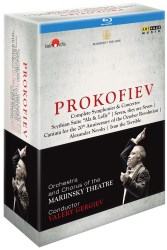Now, as a set how does this one fare against the competition? Prokofiev symphony cyclists are, in rough chronological order: Rozhdestvensky/Melodiya, Martinon/Vox, Weller/Decca, Kosler/Supraphon, Neeme Järvi/Chandos, Rostropovich/Erato, Ozawa/DG, Kuchar/Naxos, Kitayenko/Capriccio, Ashkenazy/Exton, Karabits/Onyx, Alsop/Naxos, Gaffigan/Challenge Records, Litton/BIS, Vladimir Jurowsky/Pentatone and the aforementioned Gergiev/LSO and of course this new Gergiev/Mariinsky set. Some of these are still ongoing projects, like those of Litton and Jurowski. I don’t have the Ashkenazy set (but have heard some of it) and I missed one disc each of Rostropovich and Gaffigan, but I believe I have everything else listed here. As alluded to, Gergiev seems also to have yet another cycle going on the Mariinsky label on SACD, having recently done Nos. 4, 5, 6, and 7, all of which I also have. So, who takes the prize in Prokofiev’s symphonies? The best, not necessarily in this order, are Kitayenko, Alsop, Gaffigan, and Gergiev (I’ll give this new set a slight edge interpretively over the LSO set, though the latter features slightly better orchestral playing). So, it’s a very tight race, a little too hard to call. If you want a video set of the symphonies, Gergiev’s new one is the only game in town and a very excellent choice.
