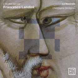 I have lost count of the number of times I have already listened to this CD. The performances by La Reverdie (joined by Christophe Deslignes playing the organetto – the instrument his contemporaries most associated with Landini – the Wikipedia entry on Landini reproduces a miniature of Landini at his portable organ, from the Squarcialupi Codex, compiled in Florence c. 1412) are superb and, for me at least, make the nature and greatness of Landini’s genius clearer than any other recordings I have heard.