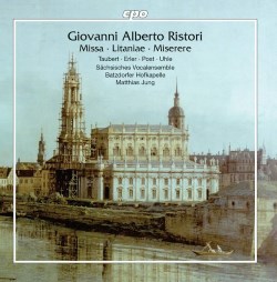 Hasse is one of the best-known composers who worked for a considerable time in Dresden. Others are Johann David Heinichen and Jan Dismas Zelenka. They are rather well represented on disc, but only in recent years has the Italian-born Giovanni Alberto Ristori attracted the attention of performers. He was almost completely ignored for a long time because a substantial part of his oeuvre has been lost. The Dresden court acquired most of his sacred music after the his death, but the manuscripts were removed for safekeeping during World War II and never returned. This is highly regrettable, considering the quality of the three compositions recorded by Matthias Jung and his ensembles on the present disc.