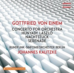 In 1960, when Edward Benjamin, a patron of the Philadelphia Orchestra, commissioned von Einem for a 'restful' orchestral piece lasting about ten minutes, the composer responded with Nachtstück. Eugene Ormandy and his forces did the honours. It is basically an Adagio in C minor, recalling to mind the slow movements of Gustav Mahler.