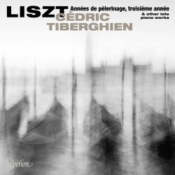 Années de pèlerinage, troisième année and other late piano works reads the title on the cover of this Liszt CD from Cédric Tiberghien, though the disc has the late pieces first, then the seven pieces of the 3rd book of the Years of Pilgrimage, which were written over the decade preceding those six selected late pieces, and in some ways foreshadow their style. It is a very satisfying compilation nonetheless, however sequenced, and at 80 minutes, a generous one. Most importantly, this is superb Liszt playing.