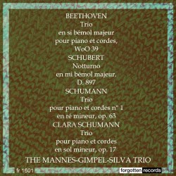 Formed in 1948 the piano trio of violinist Vittorio Brero, cellist Luigi Silva and pianist Leopold Mannes survived for two years until Bronislaw Gimpel replaced Brero. The new trio though, was not of long duration either, disbanding in 1955, and it recorded sparingly. However the two mono Decca LPs disinterred here show that the company clearly wanted a meaty classic, in the form of Schumann’s Op.63 Trio, and satellite works either new to disc, as I believe was the case with Clara Schumann’s Trio, or awkward or rare to programme, in the case of the pieces by Beethoven and Schubert.