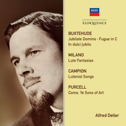 Denis Vaughan’s name is missing from the personnel listing in the booklet for Buxtehude’s Jubilate Domino but it’s rightly present in the companion In dulci jubilo. The excellent string players were reared on more romanticised tenets but try to bridge the gap with Dupré’s viola da gamba playing and to a degree they do so. Deller, meanwhile, sings splendidly and for some heretical moments I felt his singing superior to his singing of Purcell. Be careful with the volume control in the Fugue in C major for organ – not the most subtly recorded item here - as this jolly 4-minute piece might otherwise jeopardize your building’s structural integrity. Dupré plays three lute fantasias by Francesco Canova da Milano, Nos. 30 and 40 singly tracked but the unnumbered one has its own tracking. Eloquence notes that this last fantasia has never before been released.