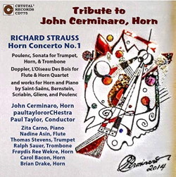 You will probably only have heard of John Cerminaro if you are a follower of the USA horn circuit. Throughout the 1970s he was Principal Horn of the New York Philharmonic (during the Bernstein era), and followed this with lengthy periods in the principal’s chair at both the Los Angeles Philharmonic and the Seattle Symphony. He also did a lot of recording for the Crystal Records label, and this tribute disc seems to have been released somewhat belatedly by them to mark his 70th birthday in 2017.