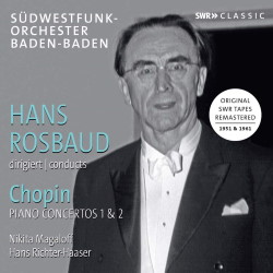 Rosbaud-directed material from the archives of SWR has begun to approach factory levels of production. In addition to composer-orientated boxes, single discs play their part, as this Chopin concerto disc demonstrates. It introduces two pianists who may not ordinarily be thought of as exponents of the repertoire but who both acquit themselves with restrained virtuosity and eloquent control.