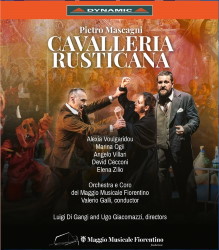 Elena Zilio is fine as Mamma Lucia here. She knows the role well; she has turned in a fine performance in a 2015 ROH, Covent Garden production, available on Opus Arte DVD and Blu-ray. (More about this later.) Marina Ogii is very good in the role of Lola, and David Cecconi is more than adequate as Alfio, although his vibrato can turn into wobble somewhat at times, as in his opening number Il cavallo scalpita. Cristina Pagliai is fine, and the chorus sings splendidly. As suggested, Maestro Galli gets spirited playing from the orchestra. He demonstrates an intelligent grasp of Mascagni’s masterly score with judicious tempos and fine phrasing overall.