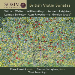 Robert Matthew-Walker’s authoritative booklet notes attest to the flourishing of the British Violin Sonata during the course of the 20th century. Six key figures, who contributed to the renaissance of modern chamber music in Britain, are included in this fascinating release. Gordon Jacob’s three short pieces are warmly welcomed as first recordings. William Alwyn’s Sonatina of 1933, described as "beautifully proportioned", has had only one previous outing. Violinist Clare Howick is making her SOMM debut in repertoire with which she has a close affinity; she has been an ardent champion of British violin music. She has previously recorded a selection of British Violin Sonatas for Naxos, of which my colleague Stuart Sillitoe spoke in glowing terms (review). Somm has had the support of the William Alwyn Foundation, the Lennox Berkeley Society, the Delius Trust, the Rawsthorne Trust and the RVW Trust in the realising of this latest venture.