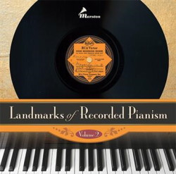 reviewed volume 1 in this series. I started by laying out some of the background behind its origin. In 1977 the Desmar label issued an LP, produced by International Piano Archives, titled "Landmarks of Recorded Pianism", its aim being to accommodate some of the 'orphan' recordings of great pianists that were superfluous to requirements. That LP was Volume 1, but a follow-up volume never materialized. Marston's project is cast along similar lines. The notes in this latest offering offer a suitable definition of a landmark, stating that it's "... recognizable as conspicuously standing out, something that might be of interest due to notable features of historical significance". The choices for what to include have been left to Gregor Benko and Ward Marston. Of historical significance, they illustrate pianists’ performance styles before World War 11, and the difference between their live and studio recordings.