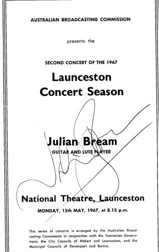 To attend a live Julian Bream recital was a special experience. In 1967, as part of an Australian tour, he played a single Tasmanian recital in Launceston