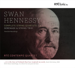 Edward Hennessy was called Swan since childhood, after his mother’s surname. His Cork-born father, who had become a wealthy man in Chicago, sent him to school in Oxford. Swan cut it short to study piano and composition at the Musikhochschule Stuttgart, which had an English-speaking composition class led by the American Percy Goetschius. Hennessy became an ardent lover of Schumann and the late Romantic school. It may be noticed that some of his first compositions were published in Germany from the mid-1880s. Moving to England around 1886, he married the descendant of an Anglo-Irish land-owning family, had two children, and was divorced by 1893. There followed a period of ten years travelling around Europe, when he composed next to nothing, and another, when he composed mainly piano music. The piano works show influences of Max Reger and increasing inspiration by the French Impressionists, particularly Ravel and Satie. Hennessy spent the years 1915 to 1919 in Switzerland, and returned to his residence in the Paris quarter of Montparnasse. That was also a new period of search for identity. His music through some of the titles given either to works or movements of works, as well as musical inflections, clearly identified with his Irish heritage. That drew him into a circle of like-minded Breton composers such as Guy Ropartz, Paul Ladmirault and Paul Le Flem, to name but the best known of them. Even so, it is not quite clear how much exposure to Ireland Hennessy had. It seems that some of his music was heard in Ireland although he seemed to have had some reputation in France. A number of pieces, especially some of his string quartets, were championed by French artists. Incidentally, his string quartets all have French titles.