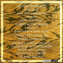 Honegger's perfectly formed Petite Suite is less than three minutes duration. The composer allowed for some flexibility in the scoring; suggestions include flutes, oboes, violins or recorders for the melodic line, with accompanying piano or harp. Over the years it’s been performed in a variety of instrumental combinations. Here, Georges Aurèle Nicolet (flute), Hansheinz Schneeberger (violin) and Pierre Souvairan (piano) do the honours. All are on top form in this captivating performance, creating a brightly-coloured tapestry of sound. Danse de la chèvre is a piece for solo flute. After a brief plaintive introduction, a nimble animated dance-like section emerges, elegantly managed by Nicolet.