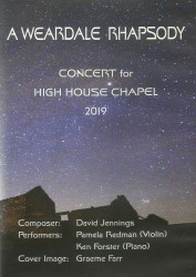 The present DVD records a special concert given on 1 June 2019, as a part of the fund-raising activities. It featured a retrospective of music by North Country composer David Jennings. The soloists were Pamela Redman, violin and Ken Forster, piano. For details of the composer, please visit his excellent website.